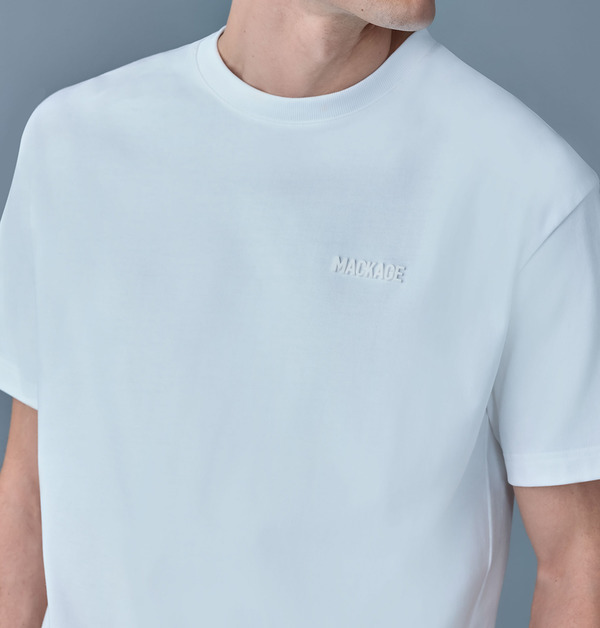TEE-Rは、リラックスフィットにカットされたドロップドショルダーの半袖クルーネックTシャツです。