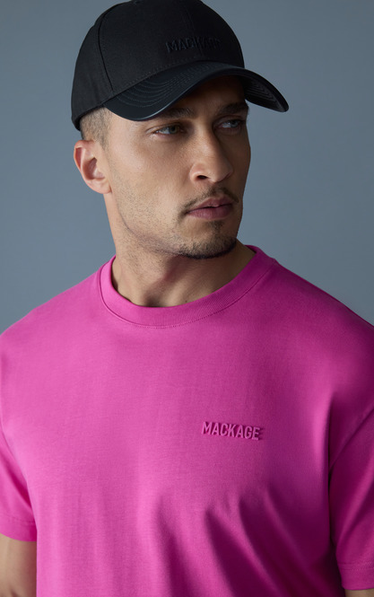 TEE-Rは、リラックスフィットにカットされたドロップドショルダーの半袖クルーネックTシャツです。