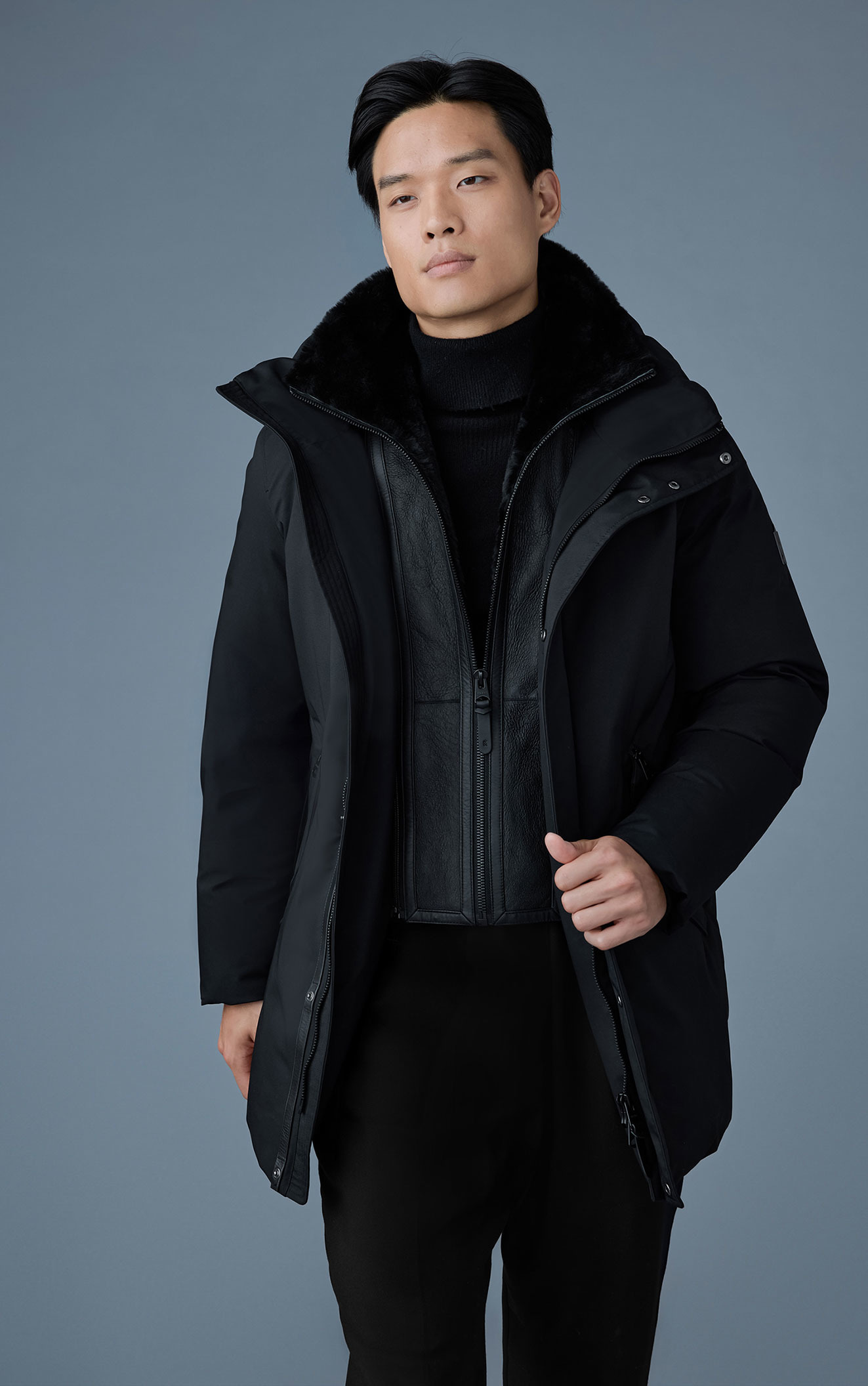 私たちのコレクションは、最高級の生地と職人による精巧なディテール、美しいシルエットと抜群の保温性すべてを兼ね備えたコレクションです。 アイコンをクリックして、このコートだけの素材や機能的な特徴をご覧ください。