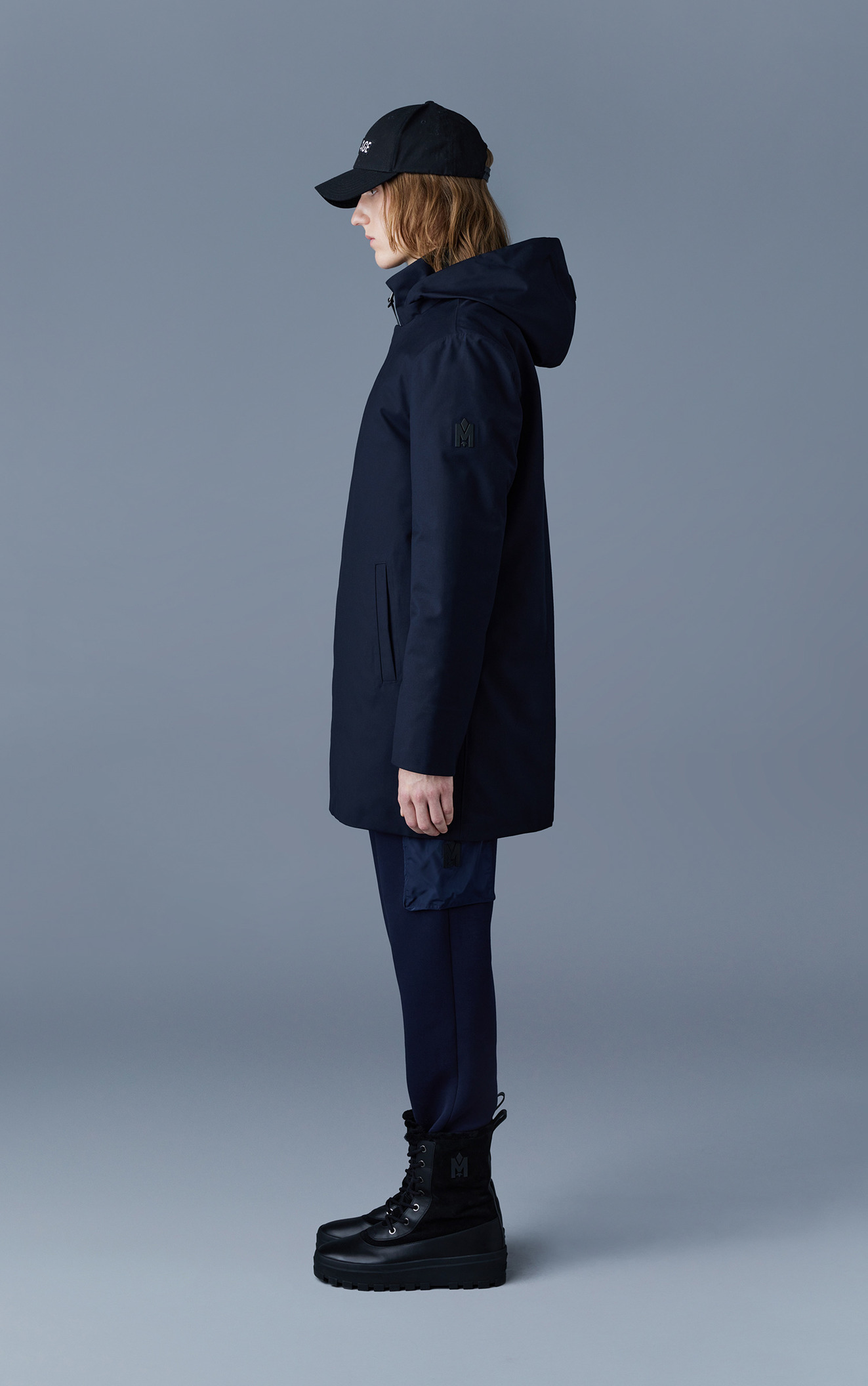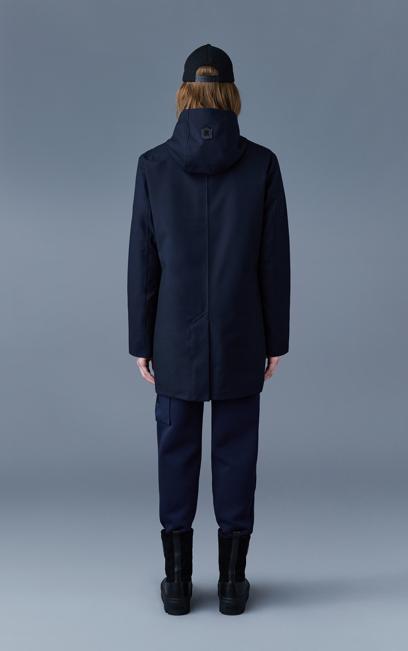 センターのフロントジッパーには、隠しスナップストーム前立てとスタンドカラーが付いています。