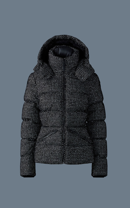 MADALYN-FLPは、定番のMADALYNにフロッキー加工を施した千鳥柄のデザインが特徴のダウンジャケットです。