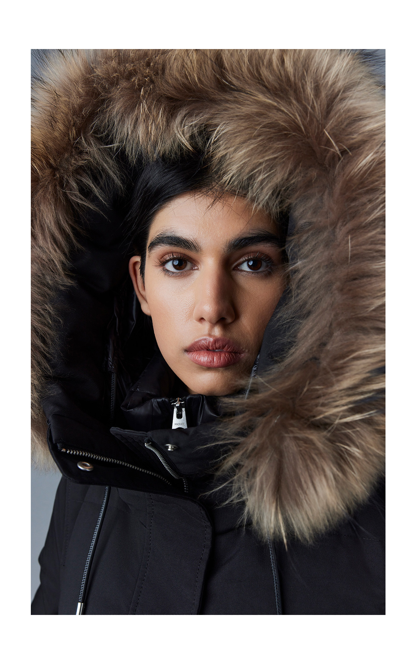 フードについているラクーンファーによりラグジュアリーな印象に。