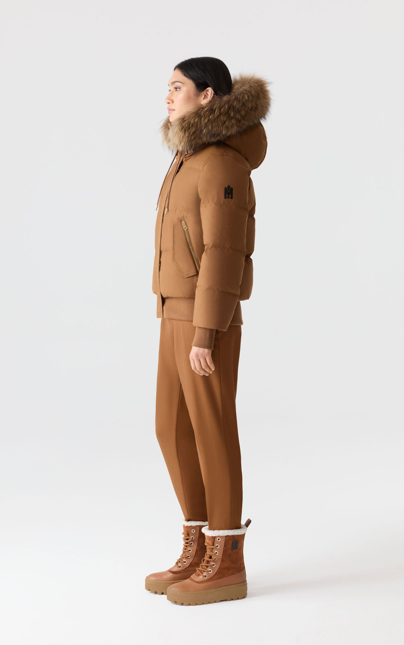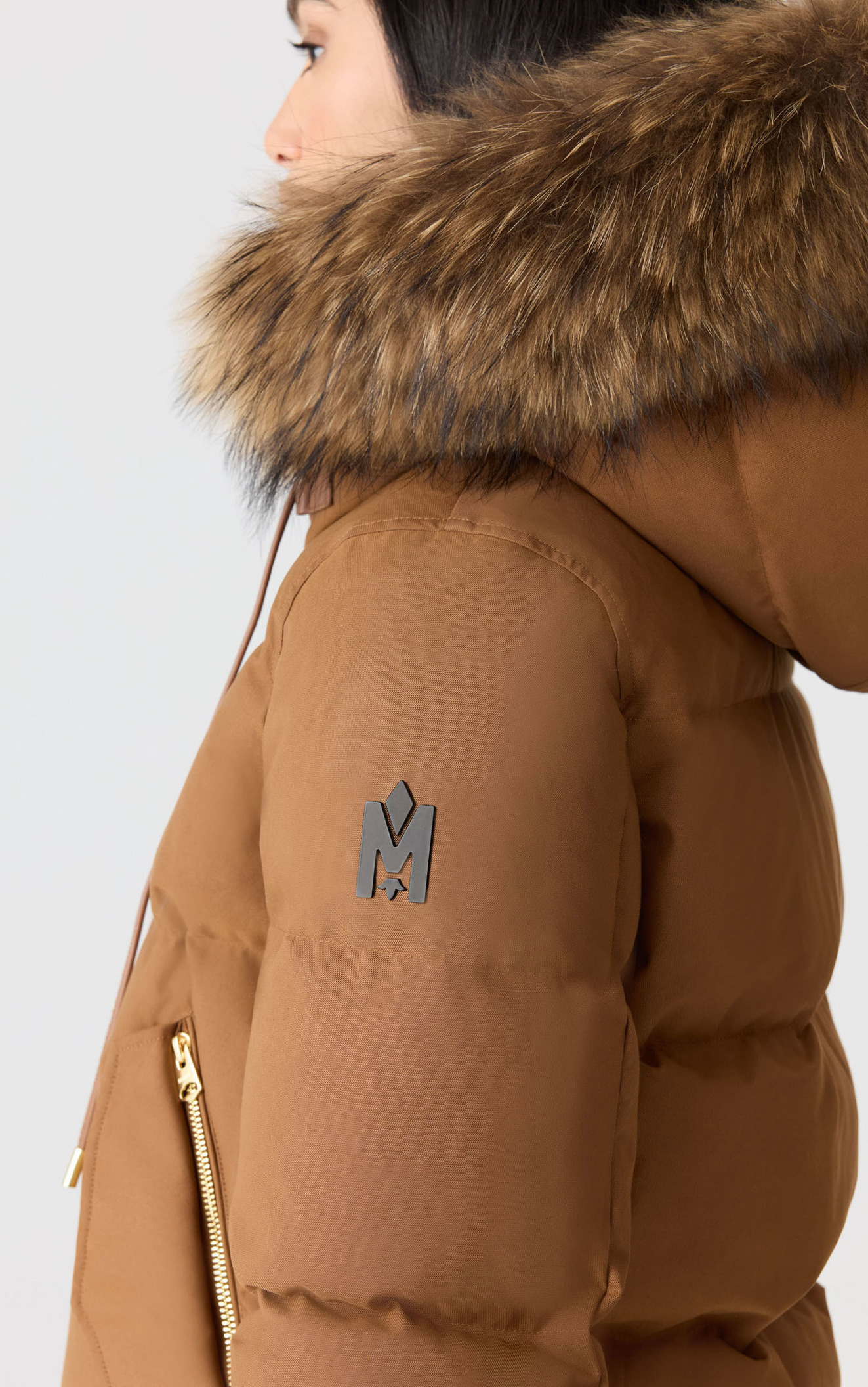 フードについているラクーンファーによりラグジュアリーな印象に。