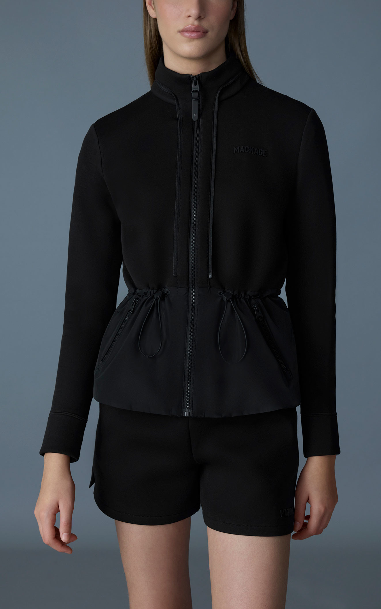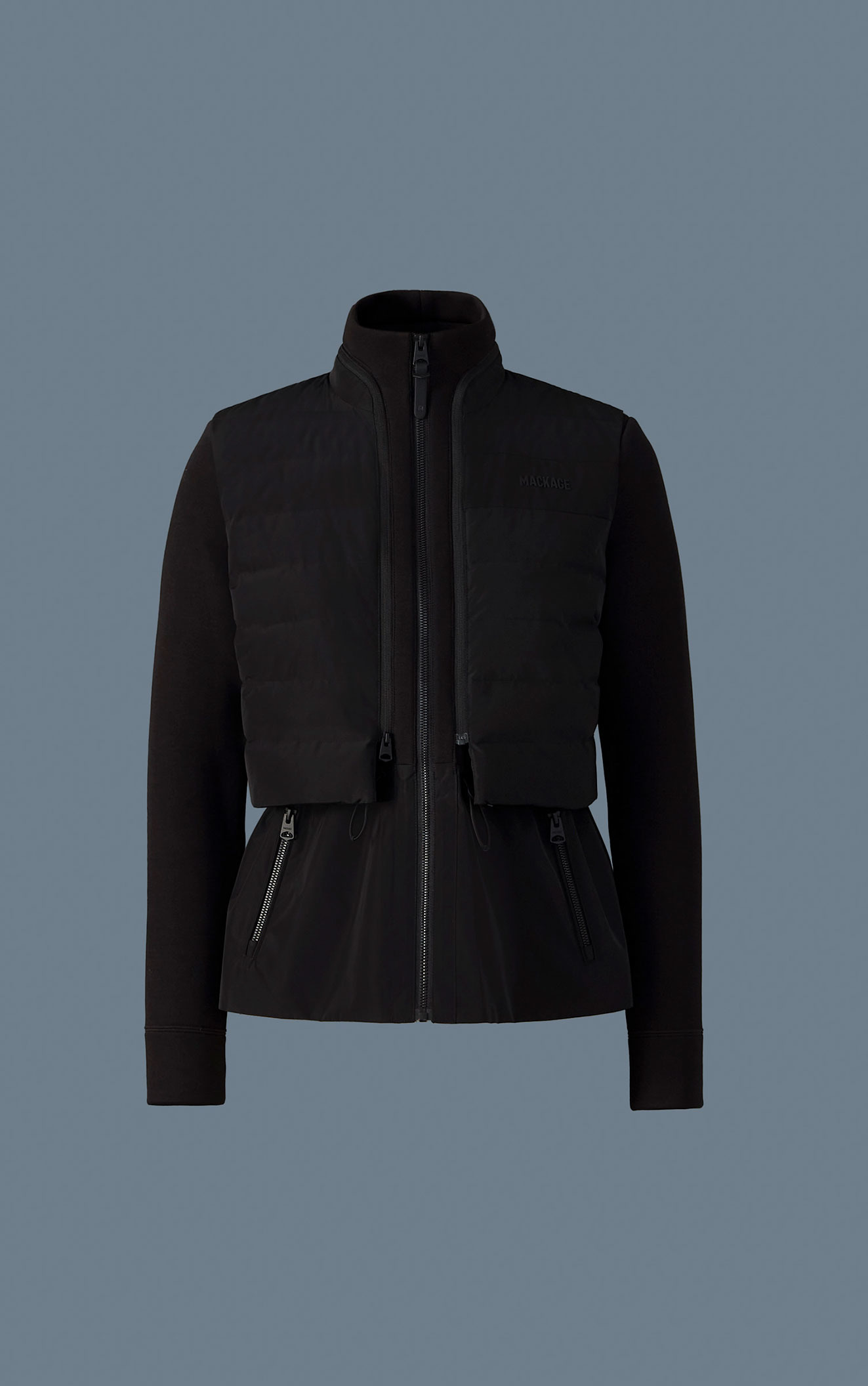 PRISCILLA-Zは、取り外し可能なキルティングベストとペプラムシルエットのインナーが付いた3WAYジャケットです。