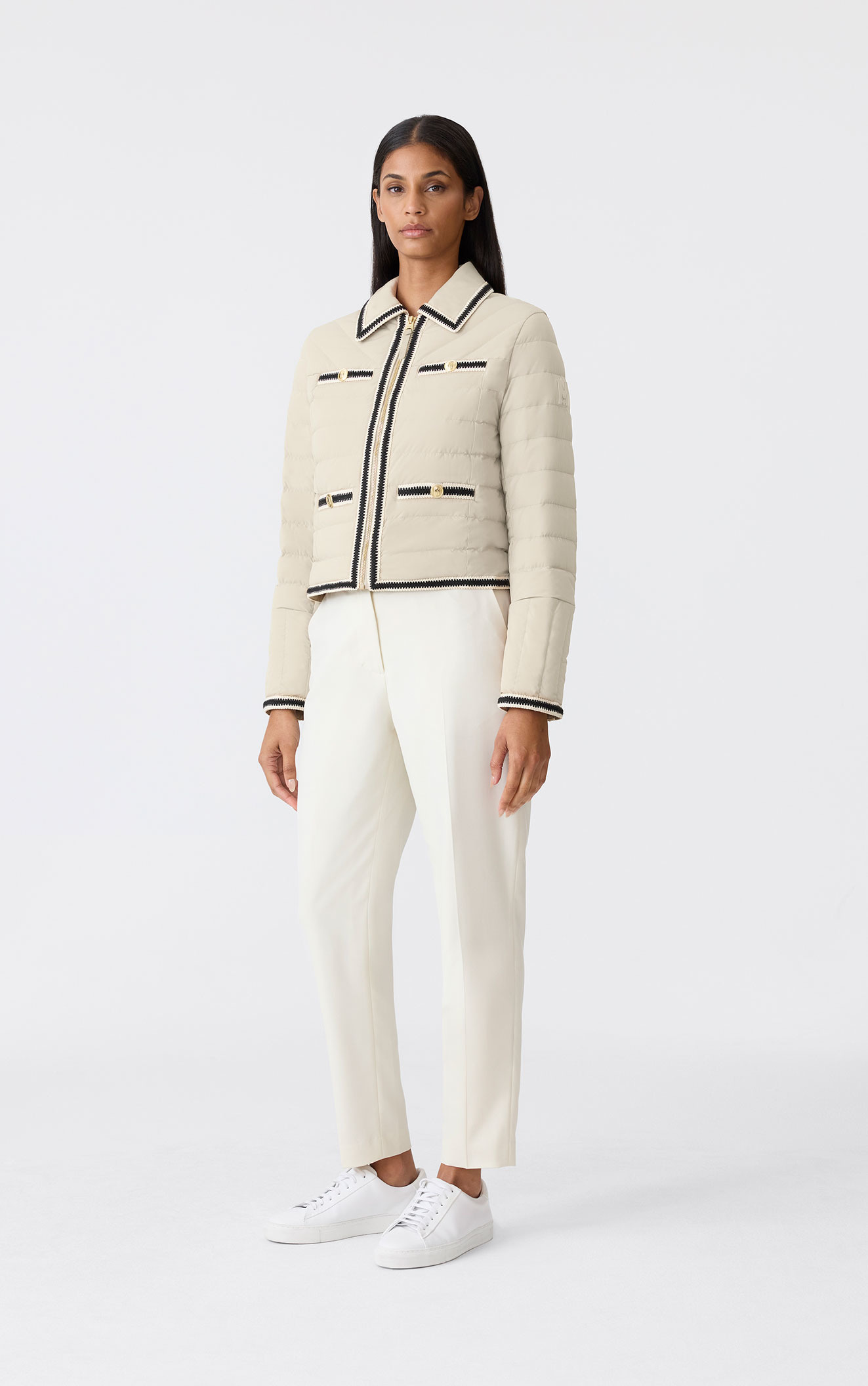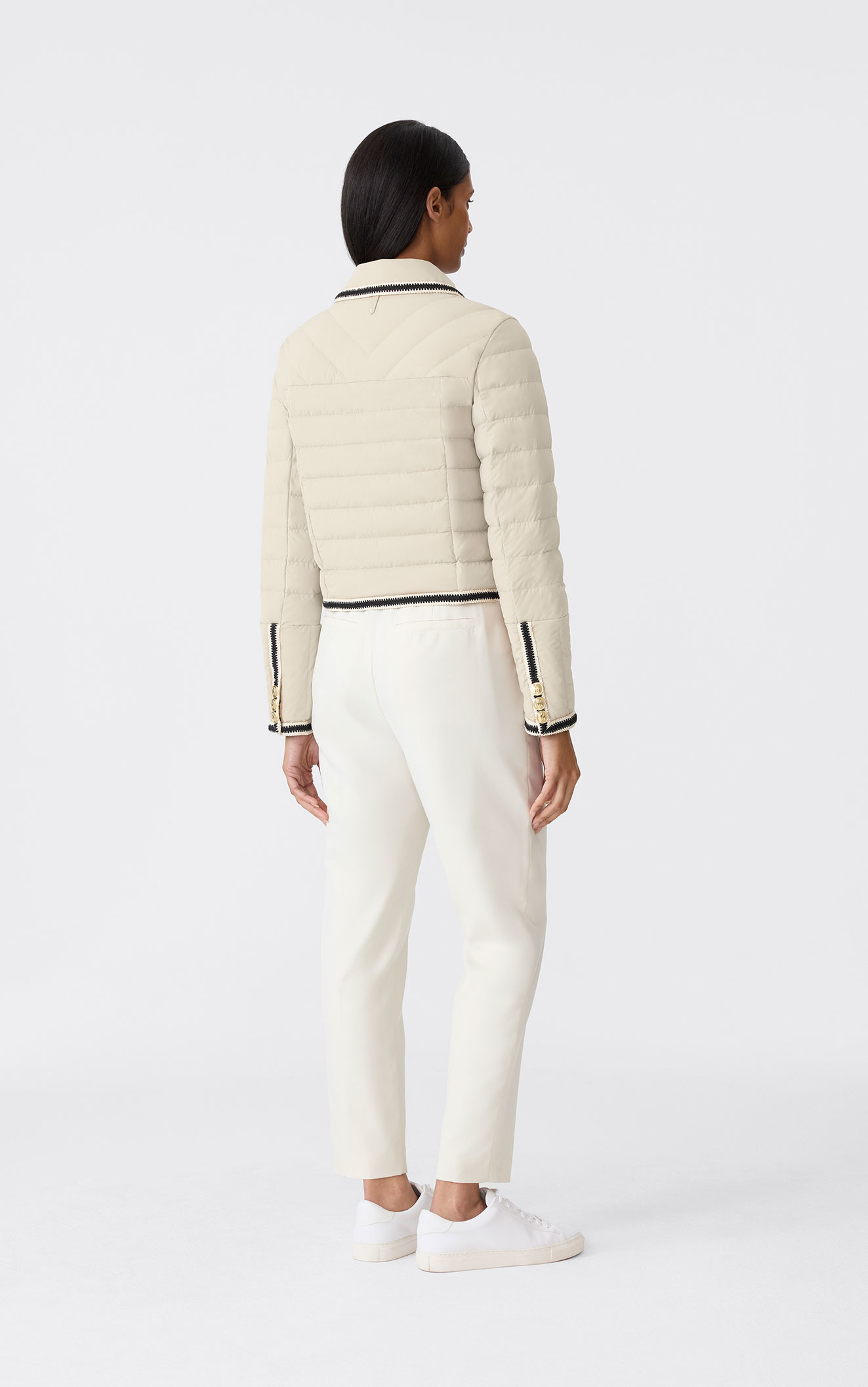 GRS認証のリサイクルダウンを使用し、-5℃まで保温性を発揮しながらも、洗練されたフェミニンなシルエットを実現。